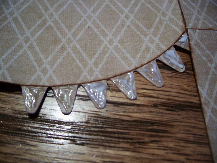 So that the ribbon doesn't fall off, adhere it to the bottom and sides with the Dot Pattern Adhesive Stamp Runner. The sentiment is added to the front with foam tabs.